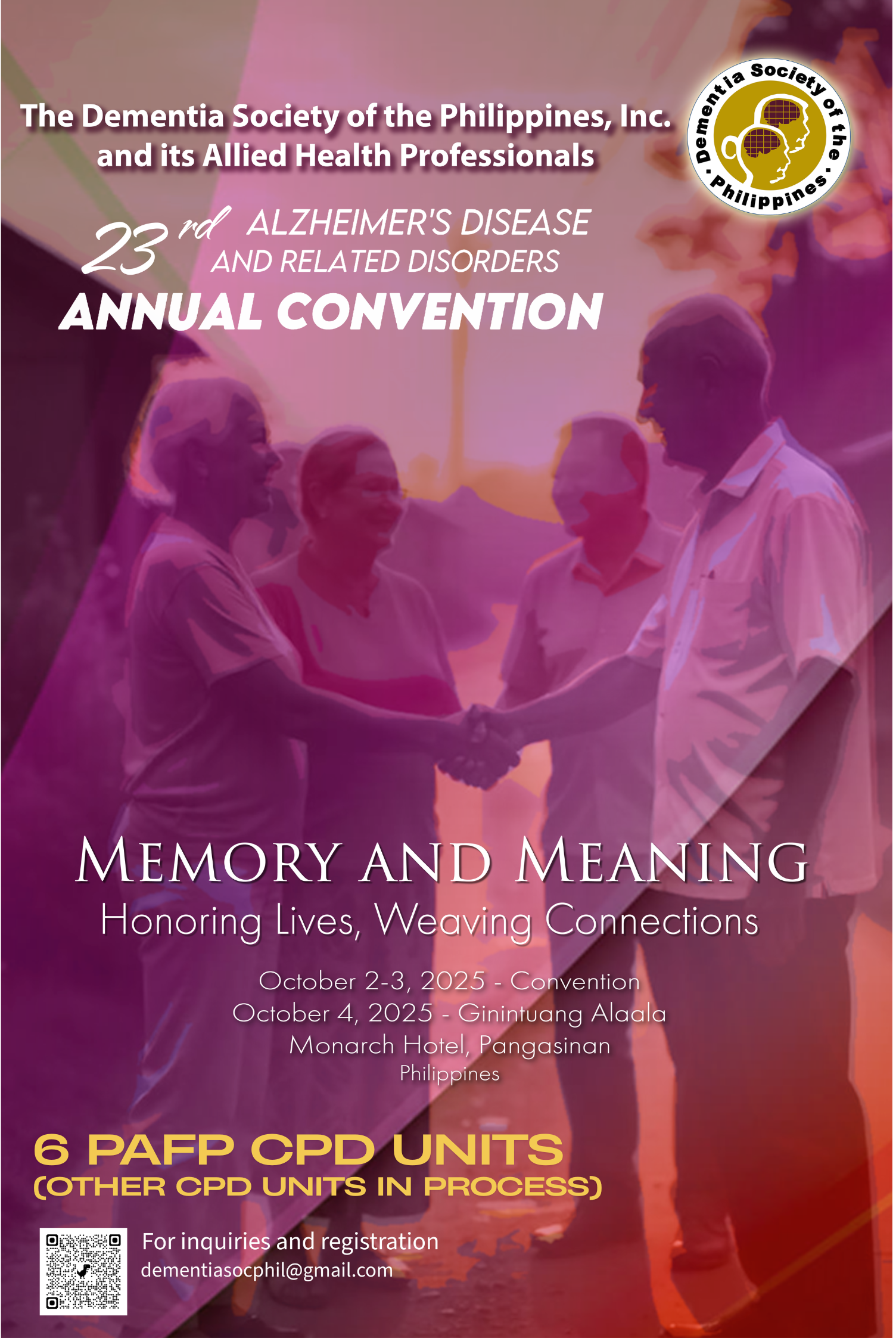 The 𝐃𝐞𝐦𝐞𝐧𝐭𝐢𝐚 𝐒𝐨𝐜𝐢𝐞𝐭𝐲 𝐨𝐟 𝐭𝐡𝐞 𝐏𝐡𝐢𝐥𝐢𝐩𝐩𝐢𝐧𝐞𝐬, 𝐈𝐧𝐜. 𝐚𝐧𝐝 𝐈𝐭𝐬 𝐀𝐥𝐥𝐢𝐞𝐝 𝐇𝐞𝐚𝐥𝐭𝐡 𝐏𝐫𝐨𝐟𝐞𝐬𝐬𝐢𝐨𝐧𝐚𝐥𝐬 held its 𝟐𝟑𝐫𝐝 𝐀𝐥𝐳𝐡𝐞𝐢𝐦𝐞𝐫’𝐬 𝐃𝐢𝐬𝐞𝐚𝐬𝐞 𝐚𝐧𝐝 𝐑𝐞𝐥𝐚𝐭𝐞𝐝 𝐃𝐢𝐬𝐨𝐫𝐝𝐞𝐫𝐬 𝐀𝐧𝐧𝐮𝐚𝐥 𝐂𝐨𝐧𝐯𝐞𝐧𝐭𝐢𝐨𝐧 last 𝐎𝐜𝐭𝐨𝐛𝐞𝐫 𝟐 𝐚𝐧𝐝 𝟑, 𝟐𝟎𝟐𝟓 𝐚𝐭 𝐌𝐨𝐧𝐚𝐫𝐜𝐡 𝐇𝐨𝐭𝐞𝐥, 𝐏𝐚𝐧𝐠𝐚𝐬𝐢𝐧𝐚𝐧, 𝐏𝐡𝐢𝐥𝐢𝐩𝐩𝐩𝐢𝐧𝐞𝐬.